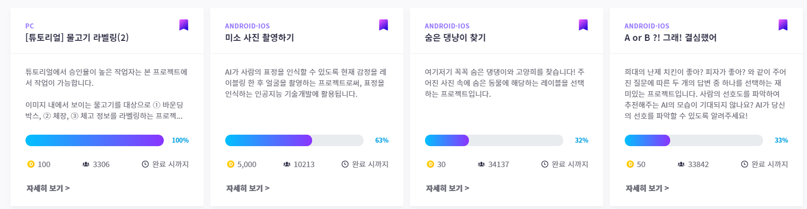 데이터 라벨링 알바를 제공하는 레이블러를 실행해보면 다양한 서비스를 제공하고 있습니다. 조금은 이해가 되지 않는 미션들도 있으나, 살펴 보면 얼마든지 쉬워 보이는 미션들이 존재합니다.
