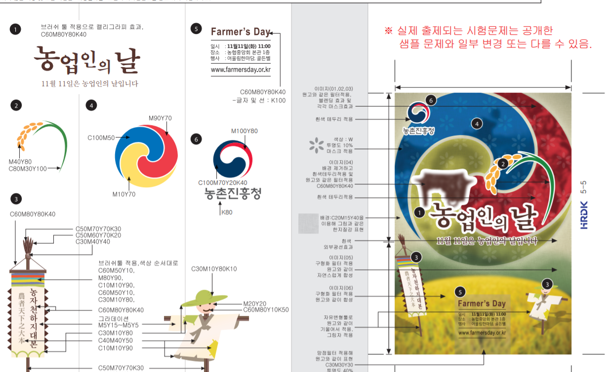 아트웍을 통해 시안 디자인을 만들고, 디자인 파일을 작업하고 샘플을 확인하는 작업으로 이루어집니다. 4시간 동안 시험을 보게 되는 이유가 여기에 있는 것입니다.