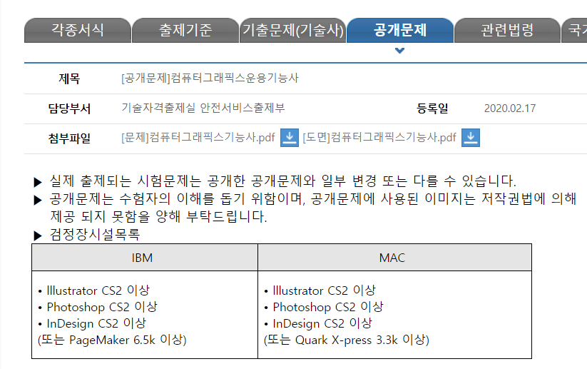 큐넷에 접속해보면 컴퓨터 그래픽스 운용기능사 자격증은 쉽게 말해서 디자인 프로그램을 잘 다루는지 테스트를 하는 시험이라고 보면 됩니다.