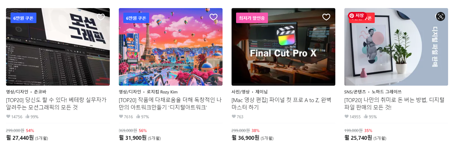 학원비보다는 훨씬 저렴하고, 자기에게 필요한 강좌만 들을 수 있으니 클래스 101, 클래스 톡과 비슷한 강의를 2020년에 더 원하게 된 것입니다.